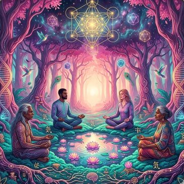 Hypnotherapy (Group): Accesses the subconscious mind to replace limiting collective beliefs with empowering suggestions for health and sovereignty.